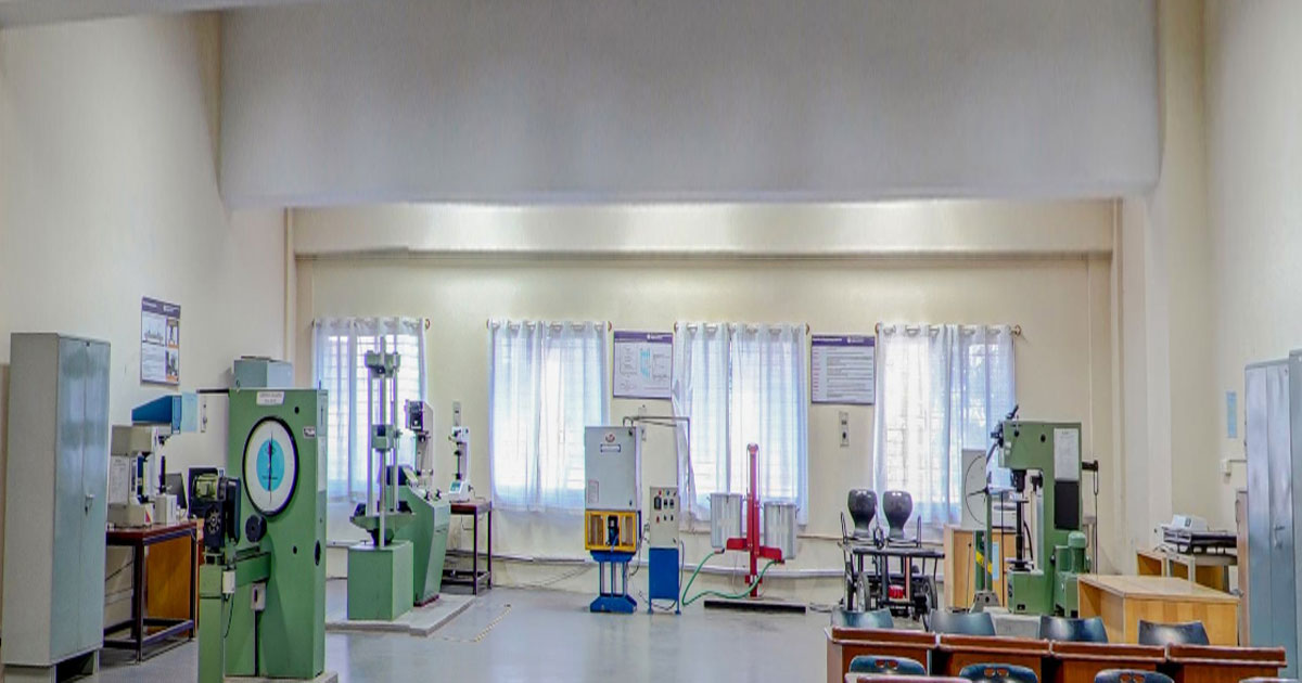 Students perform experiments using universal testing machines, compression testing machines, impact testing machines, hardness testers, and other standard equipment. The lab introduces concepts related to stress–strain behavior, modulus of elasticity, ductility, brittleness, and material failure patterns, helping students understand how materials behave under different loading conditions.
