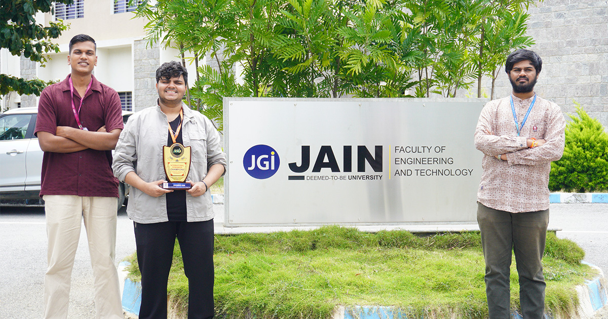 It was a moment of sheer pride, as the B.Tech students of Jain (Deemed-to-be University) brought laurels by receiving the INAE Innovative Student Project Award 2019. Receiving an INAE Innovative Student Project Award is of great achievement as the Indian National Academy of Engineering (INAE), is an apex body and promotes the practice of engineering & technology and the related sciences for their application to solving problems of national importance.