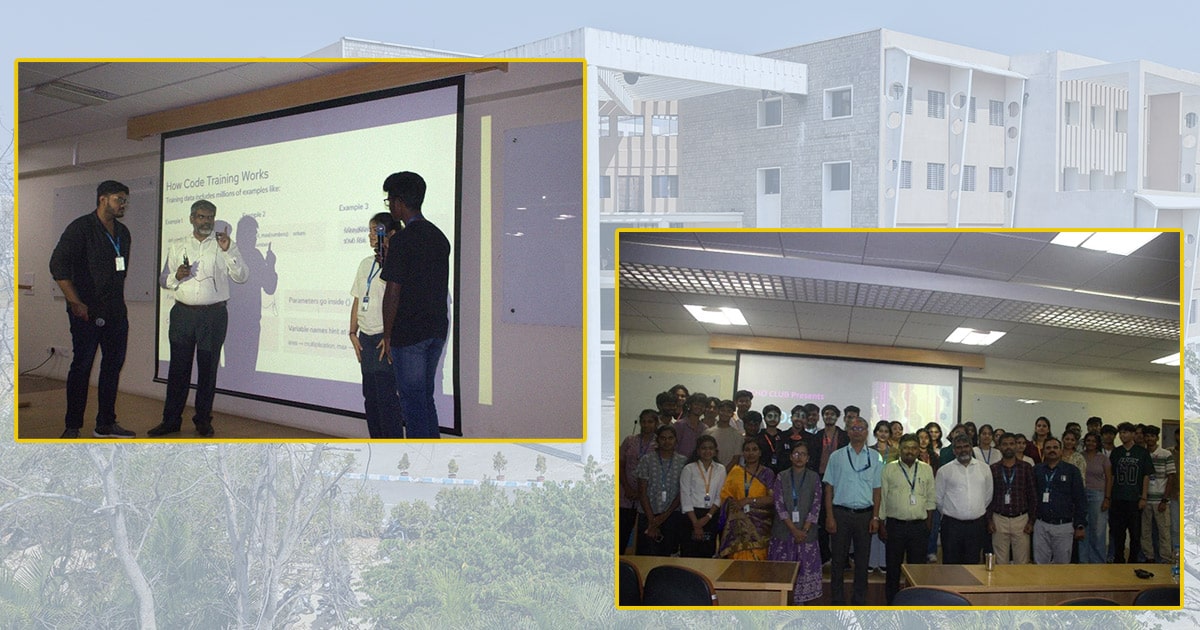 Addressing the gathering, Dr. Venkadeswaran underscored the transformative role of Large Language Models (LLMs) such as GPT and BERT in revolutionising intelligent systems. He encouraged students to engage actively in experiential learning opportunities that strengthen their understanding of cutting-edge AI advancements.