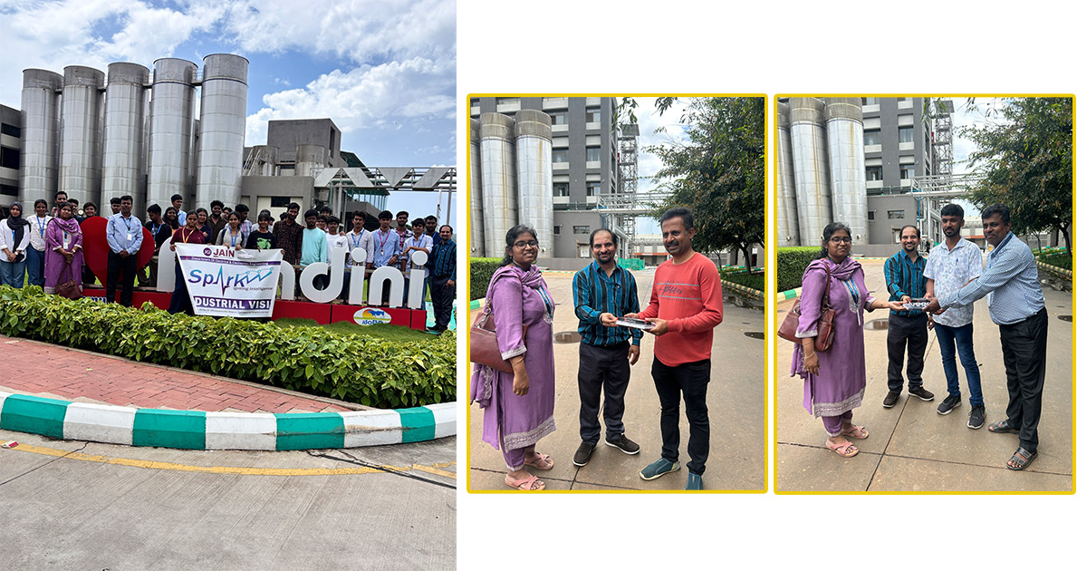 Kanakapura, 17 October 2025: The Faculty of Engineering and Technology, JAIN (Deemed-to-be University), successfully organised an industrial visit to the Karnataka Milk Federation (KMF), Kanakapura, under the Spark Club initiative of the Department of Electrical and Electronics Engineering. The visit provided students with hands-on exposure to modern dairy processing operations, quality control mechanisms, and cooperative management practices, fostering a deeper understanding of sustainable industrial development.