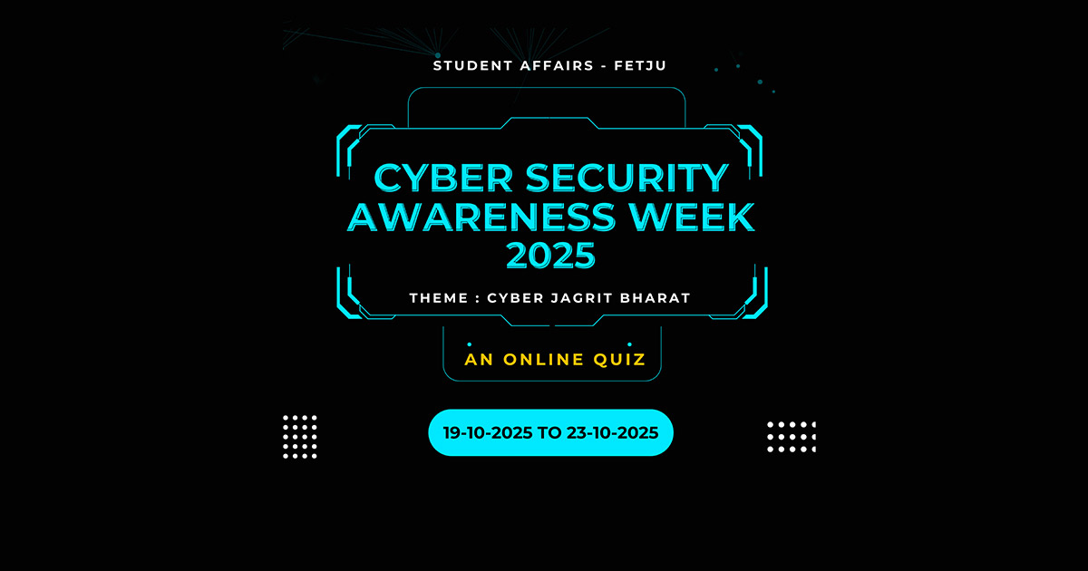 Kanakapura, October 23, 2025: The NSS Wing of the Faculty of Engineering and Technology, JAIN (Deemed-to-be-University), successfully organised a National Level Online Cyber Security Quiz—2025 from 19th to 23rd October 2025 under the Cyber Jagrit Bharat initiative. The event formed part of Cyber Security Awareness Month (CSAM). It aimed to foster awareness of safe online practices, strengthen cyber hygiene, and promote responsible digital citizenship among students nationwide.
