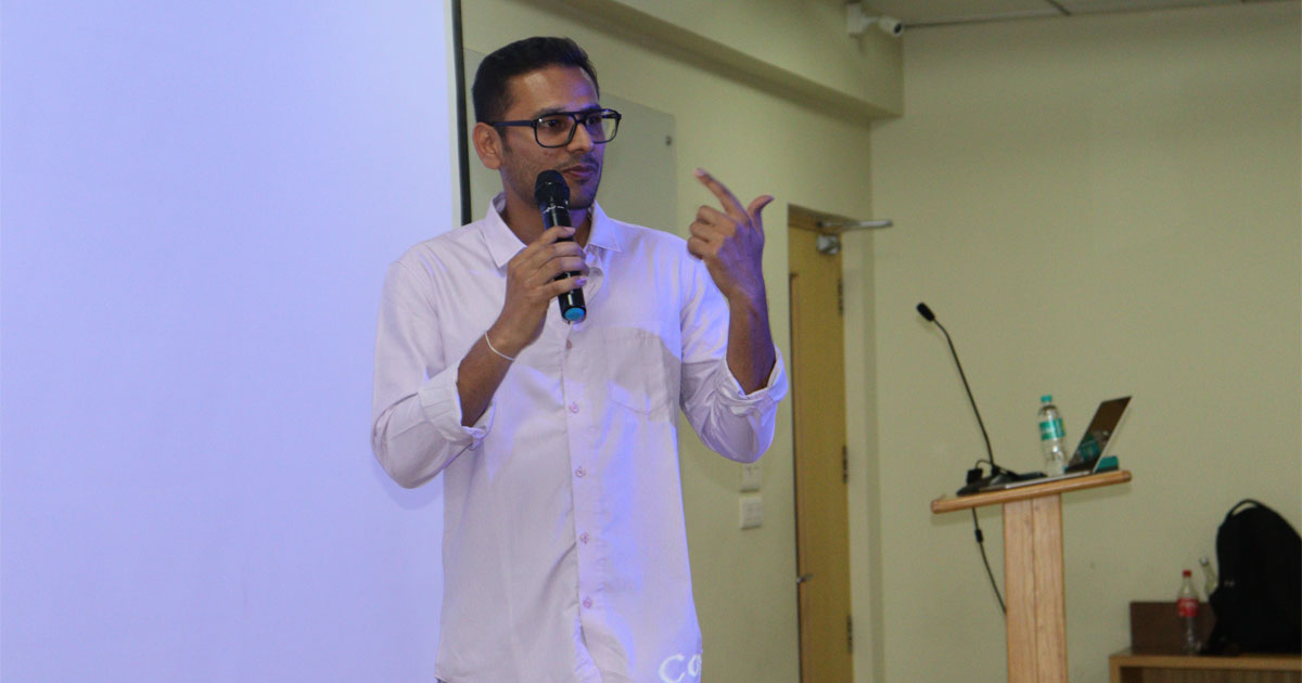 The speaker, Prof. Sridhar T, Professor, Alliance College Of Engineering and Design, who spoke on the Charm of Becoming an Entrepreneur, Creativity and Problem Solving. He showed them practical real world businesses like Amazon, Redbus, Flipkart that started small by identifying problems in society but grew into giant businesses.