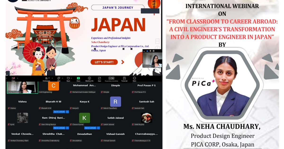 Bengaluru: The Department of Civil Engineering, JAIN (Deemed-to-be University), through its Atharva Club, hosted an International Alumni Webinar titled “From Classroom to Career Abroad: A Civil Engineer’s Transformation into a Product Engineer in Japan” on 12 October 2025. Conducted online, the session attracted 65 registrations with 54 active participants, offering students a unique opportunity to interact with an accomplished alumna now thriving in an international professional environment.