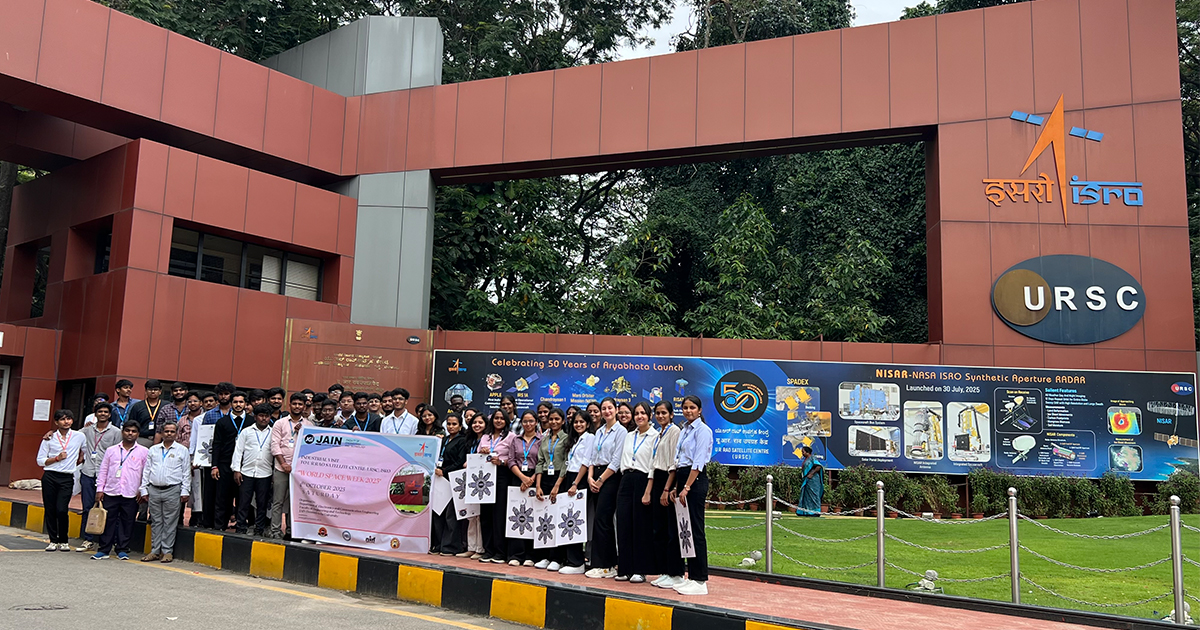 Bengaluru, 18 October 2025: The Department of Electronics and Communication Engineering (ECE), Faculty of Engineering and Technology, JAIN (Deemed-to-be University), successfully organised a high-level industrial visit to the U R Rao Satellite Centre (URSC) – ISRO on Saturday, 4th October 2025. The visit was held in conjunction with the global World Space Week 2025 celebrations, offering students a critical exposure to India's leading space research facility.